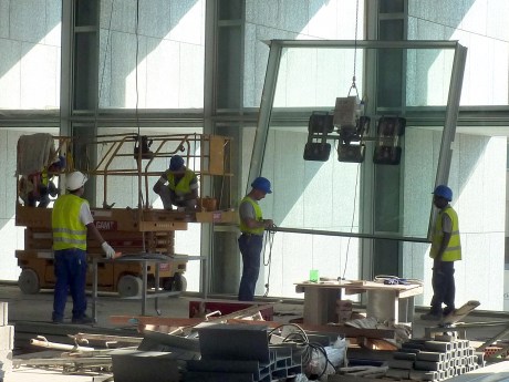 Los vidrieros cerrando la fachada al mar