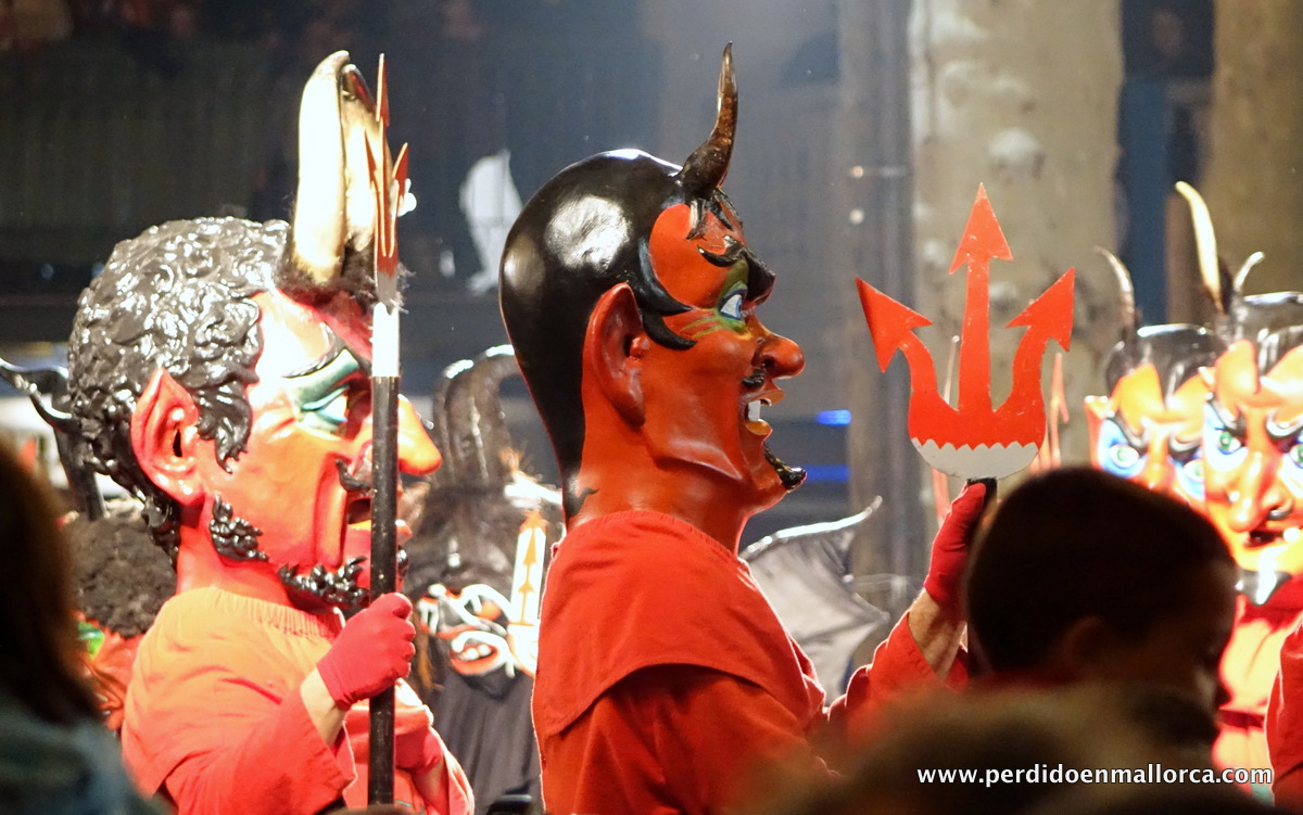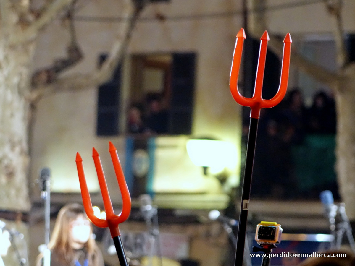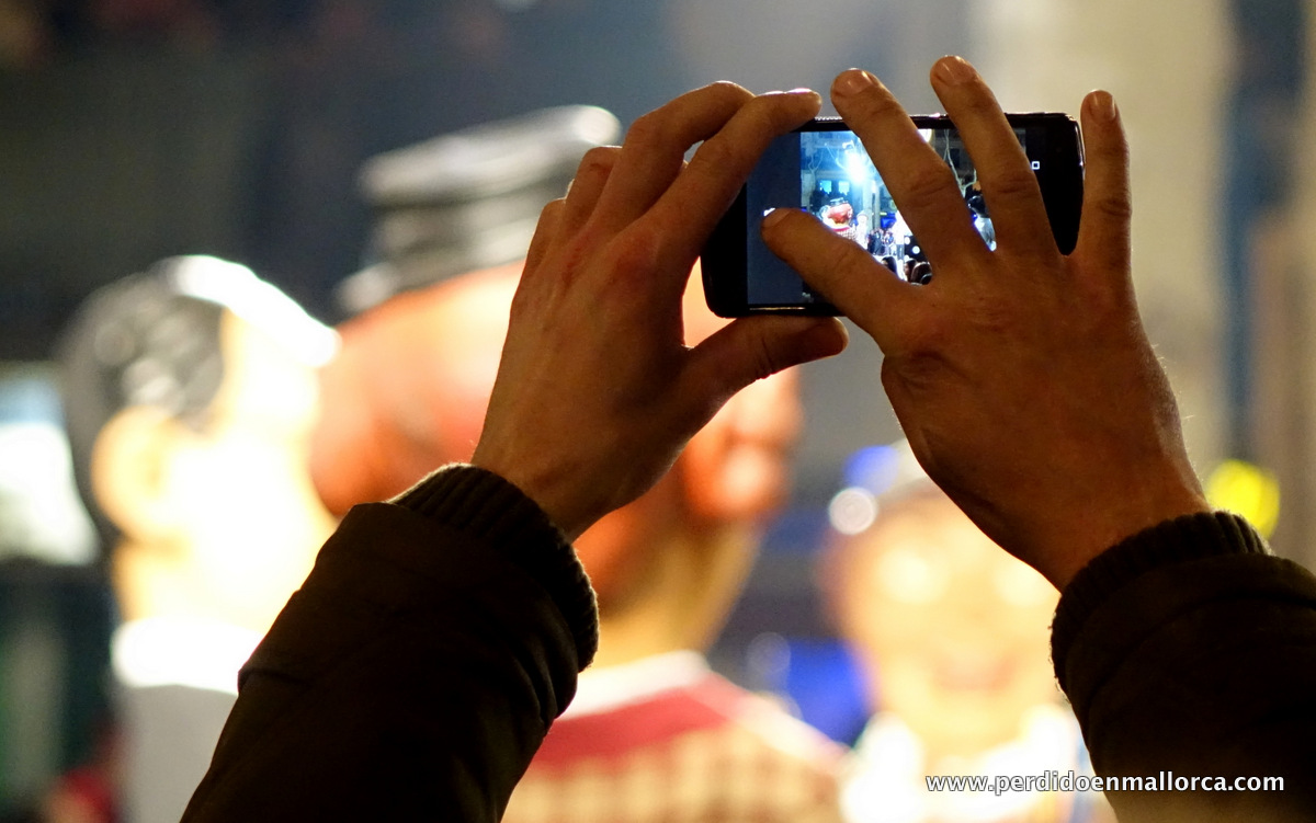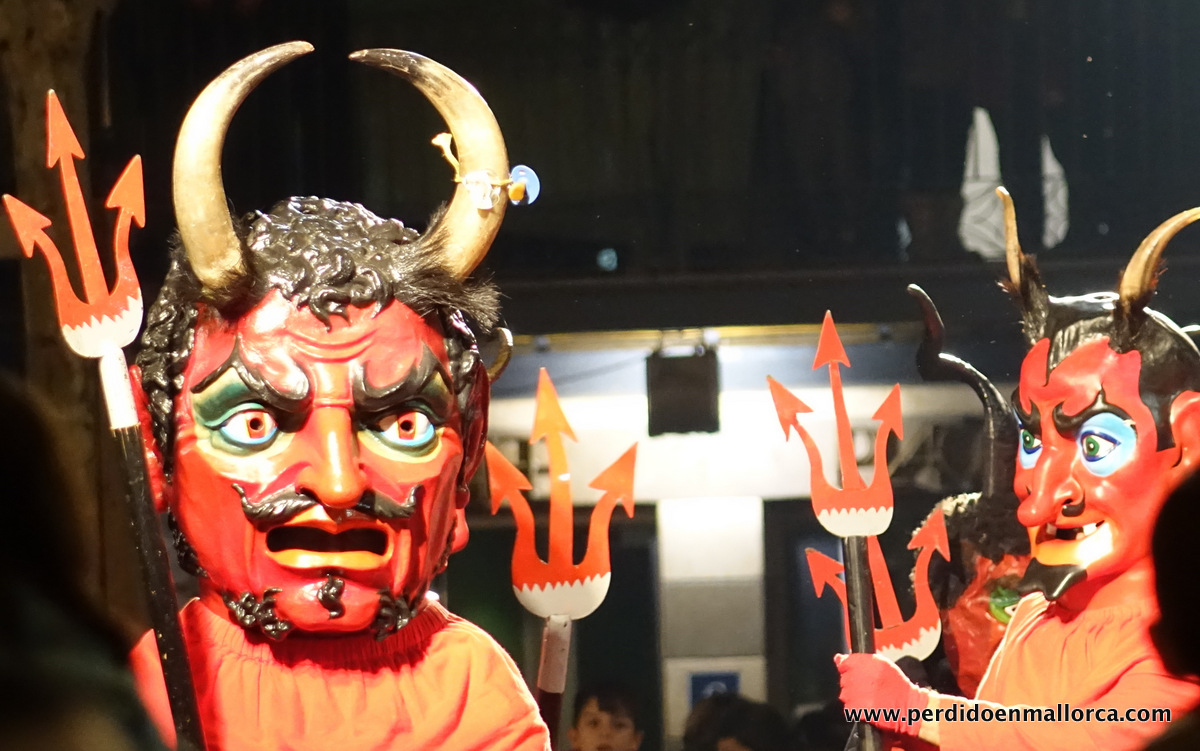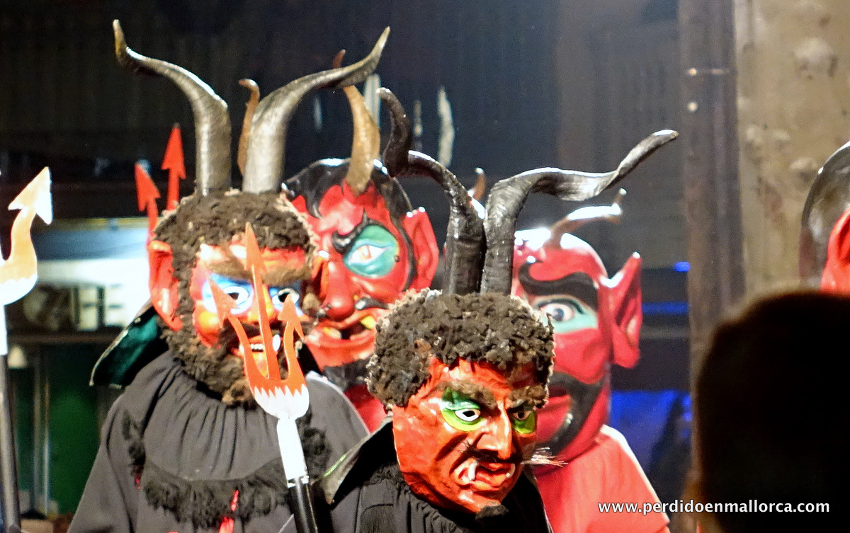 La Revetlla de Sant Antoni es una fiesta muy popular que convoca a todo el pueblo y a miles de visitantes para celebrarla en un ambiente de encuentro entre vecinos y amigos, rodeada de buen humor y ganas de pasarlo bien entre foguerons, espinagades, torrades y fuegos de artificio. Durante el tiempo que duran se celebran numerosos actos, siendo uno de los más concurridos el Baile de Dimonis de l´Obreria y de las Collas de Caparrots —cabezudos—, al son de la Banda Municipal de Sa Pobla, que recojo en las fotografías que acompañan a este texto y en este bonito corto rodado en la Revetlla del año pasado por Curly Commas TV, la productora mallorquina de una hija de Sa Pobla, a la que tuve el gusto de conocer durante la celebración del Blogtrip #MallorcaFeelings 2014
