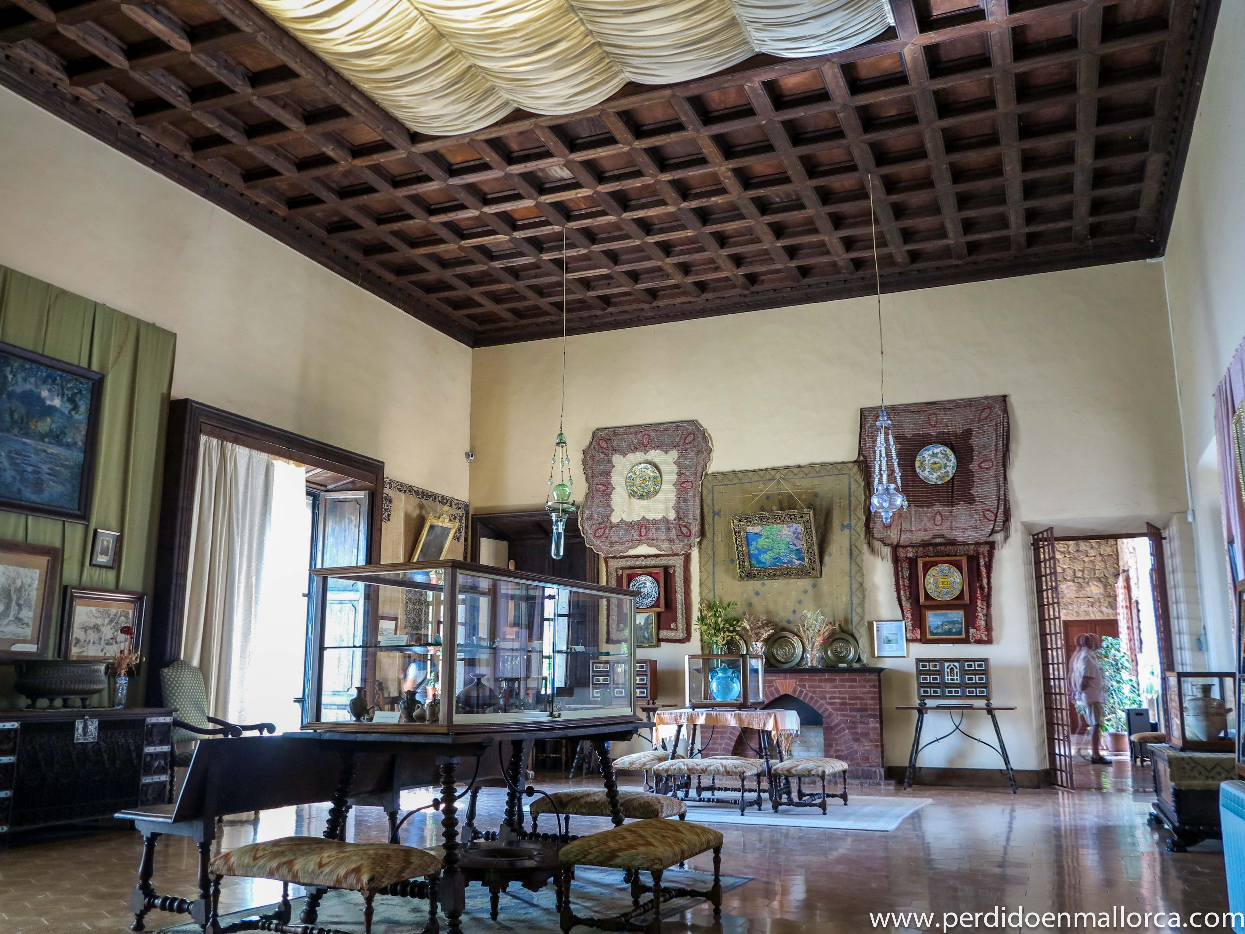 Los interiores son amplios y frescos, se puede visitar un dormitorio y dos grandes estancias en los que se exponen recuerdos y curiosidades del tiempo del Archiduque: pequeñas figuras fenicias, cerámica árabe, monografías y libros manuscritos por el propio Archiduque, así como otros muchos objetos. Un tercer salón se dedica a la música “una de las más hermosas salas de conciertos del mundo”, dicen, pero este auténtico mirador sobre el mar, solo puede visitarse asistiendo a los llamados Conciertos del Atardecer que se celebran con ocasión del Festival de Música de Deiá, que suelen ser interpretados por artistas jóvenes de todos los rincones del mundo.
