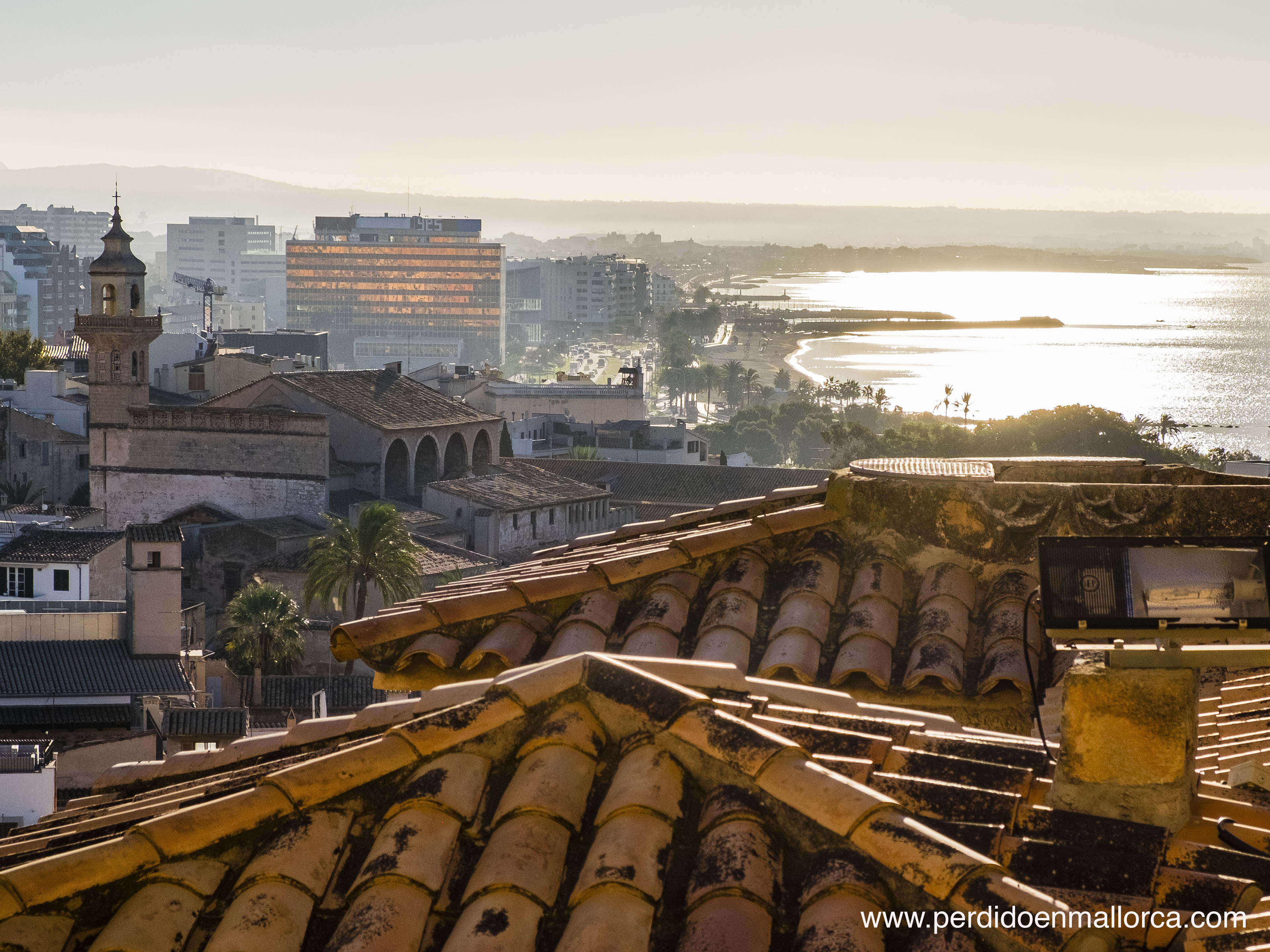 Hacia el Este se ve la Iglesia del Convento de Sta. Clara, el edificio Gesa y la playa de Can Pere Antoni
