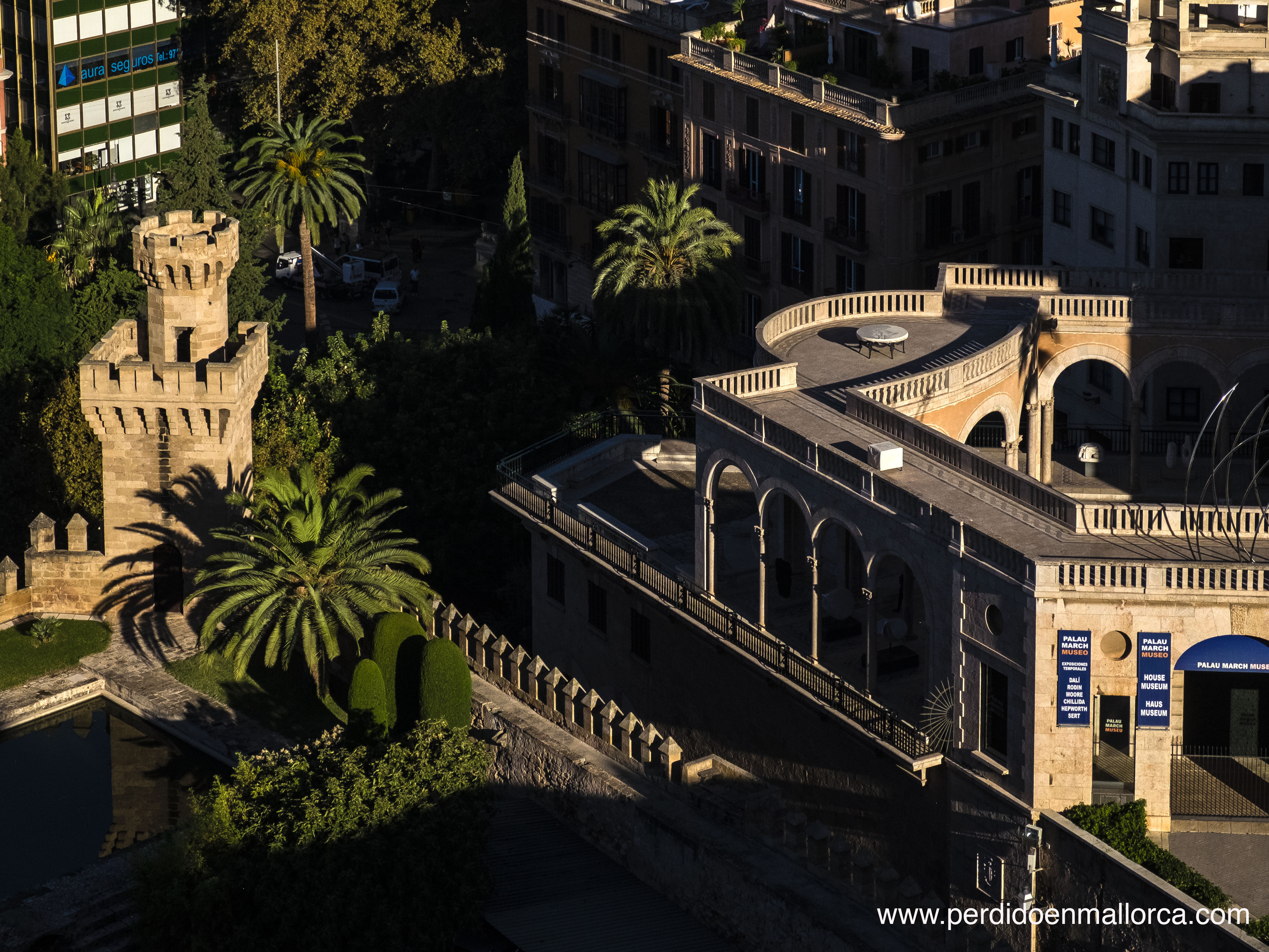 Jardines de la Almudaina, Torre del Caps y edifico de la Fundación Bartolomé March junto a la Plaza de la Reina