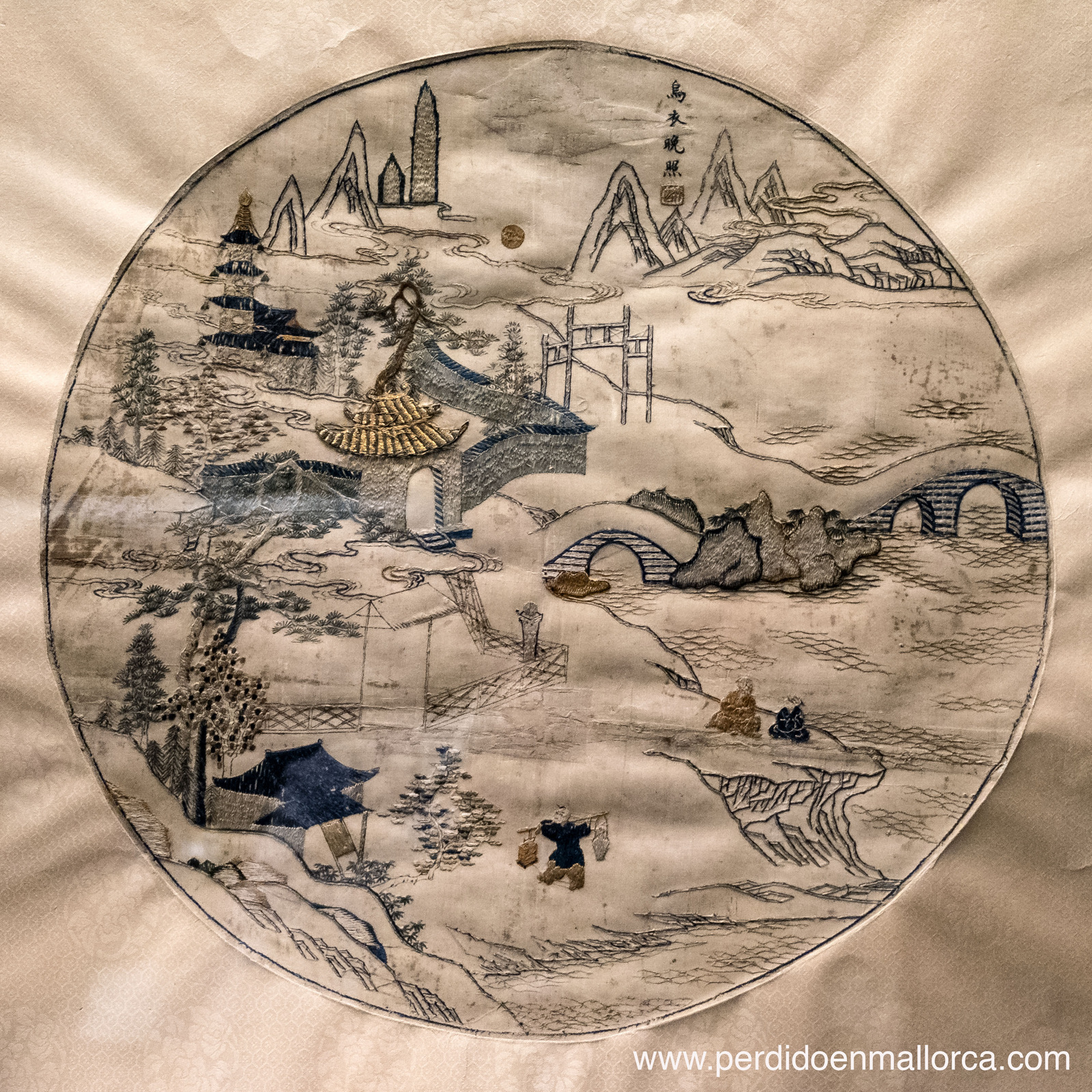 La Ciudad de Piedra después de la Nieve, panel de seda bordada al estilo Gu que representa la antigua ciudad fortificada que originó Nankín. Final del periodo Ming.