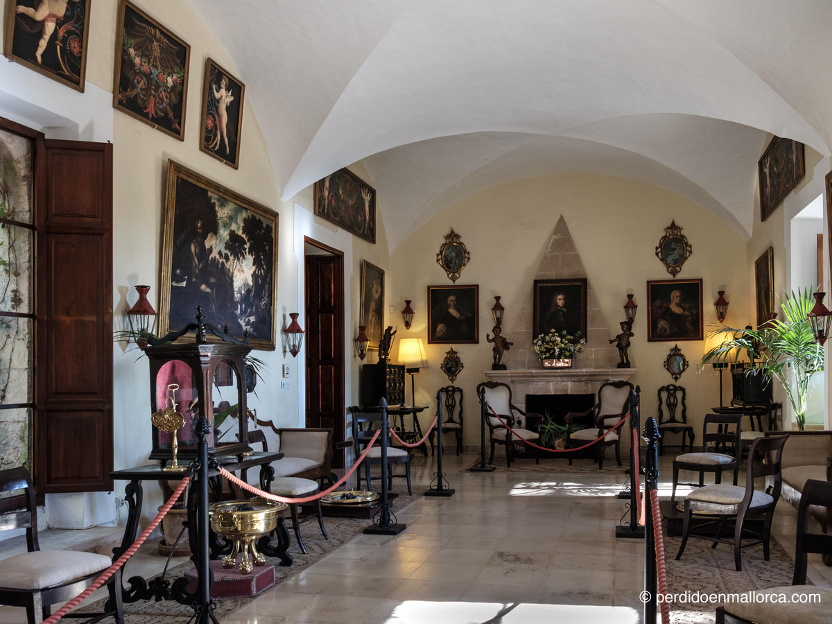 Salón de entrada a Es Calderers, con bonitas bóvedas de arista formando su techo.