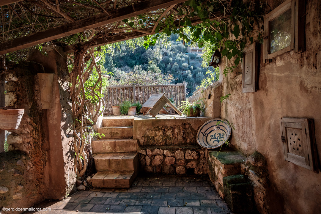 Terraza de una residencia particular con su buen emparrado para sombra y estupendas vistas al valle.