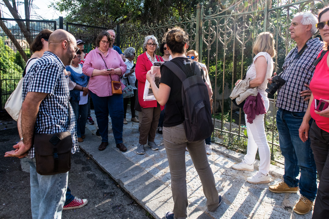 La Historiadora Irene Cabrer explica a los asistentes la génesis de los jardines privados de las casas sollerenses