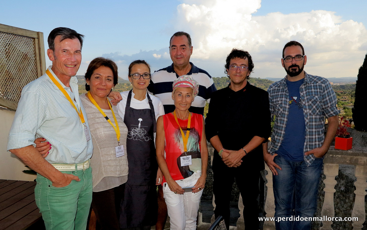 7.- Mis compañeros del blogtrip Mallorca Feelings, de derecha a izquierda,Eli Gallardo @Despegante, periodista y politólogo; Jefe de Sala y marido de Marga Coll; delante Mila, Directora y Editora de @arteaunclik; detrás Luis Fernández @luisfernández, Consultor de Social Media especializado en Turismo 2.0 ; Marga Coll Chef y propietaria; Engracia, la encantadora mujer de Luis y este naúfrago Perdido en Mallorca @PerdidoMallorca que os escribe, Ingeniero de profesión, viajero, blogger y apasionado de Mallorca de afición. Todos de orígenes variopintos, todos departiendo agradablemente porque alrededor de un mantel, con buenas viandas servidas y un buen caldo en las copas, no cabe duda de que las risas son más francas y los problemas del mundo se diluyen . . . lo que con toda seguridad, nos traerá de vuelta a Miceli en más de una ocasión.