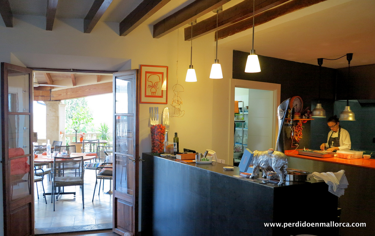 2.- El local, ubicado en una casona mallorquina del siglo XIX rehabilitada en el pueblo de Selva (Mallorca) y perteneciente a la familia Coll. Se accede a la sala por un agradable zaguán y su capacidad es de 25 comensales, se trata pues de un lugar acogedoramente familiar, nada multitudinario. La casa tiene también un bonito patio y una terraza con vistas magníficas, donde pudimos disfrutar de buena comida y mejor conversación.
