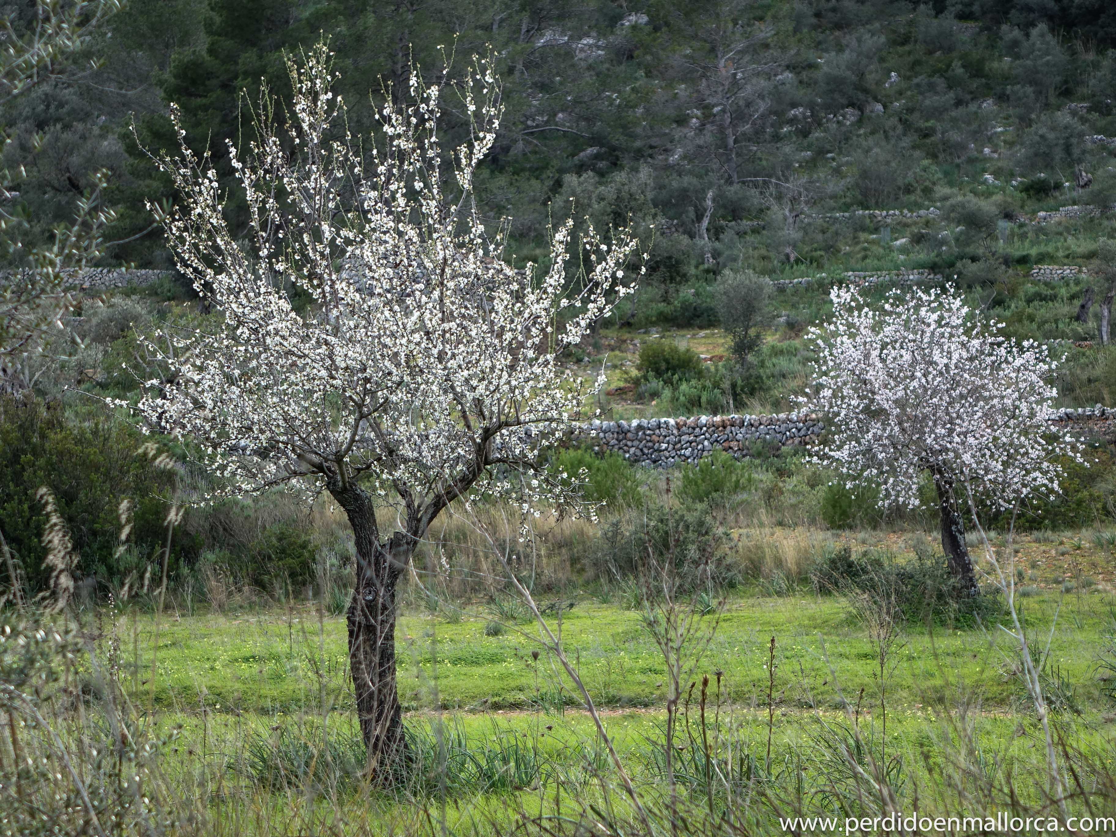 4.- El almendro, primus dulcis, en mallorquín ametller, especie cultivada muy común en los campos mallorquines, culpable de que entre finales de Enero y principios de Marzo estos campos se tiñan de un bellísimo blanco que les da un un toque poético que preludia la Primavera. La almendra mallorquina —de más que justificada fama—, es un fruto seco delicioso con un importante papel en la gastronomía local, pues es rica en aceites, vitaminas, minerales y fibras; producto esencial en la respostería isleña, gracias a ellas, entre otras delicias podemos degustar el exquisito helado de ametller de Can Joan de S´Aigo, que no hay otro igual en el mundo. El halo romántico de los almendros en flor siempre ha inspirado a los poetas y en todas las sociedades que lo cultivan, se le tiene por símbolo del primer amor.