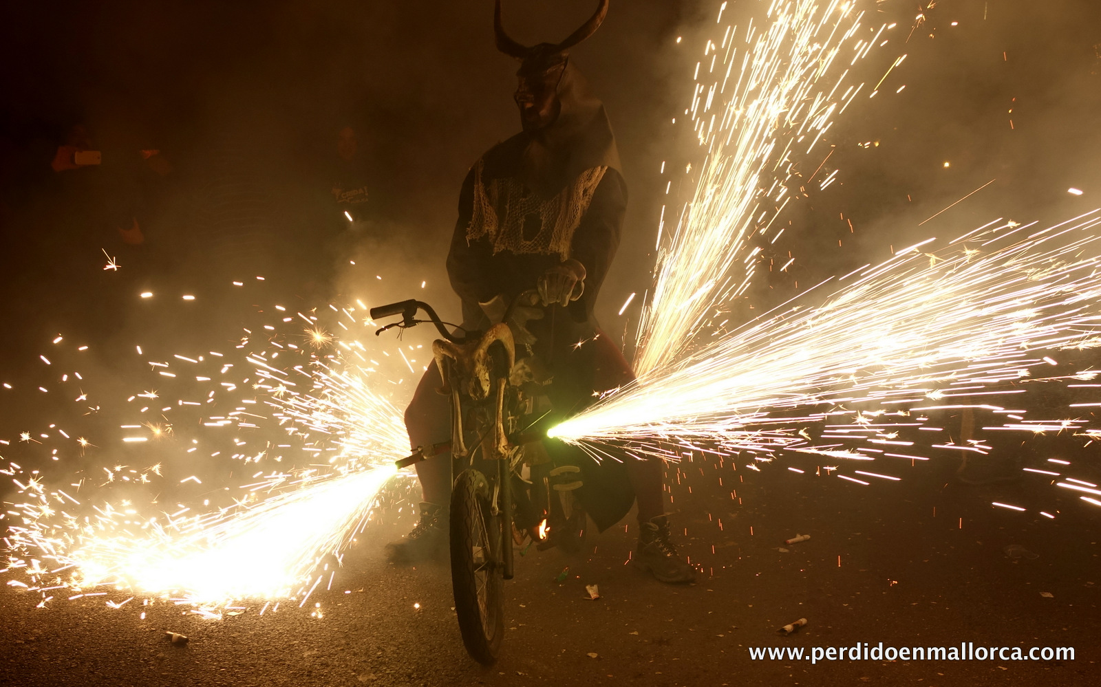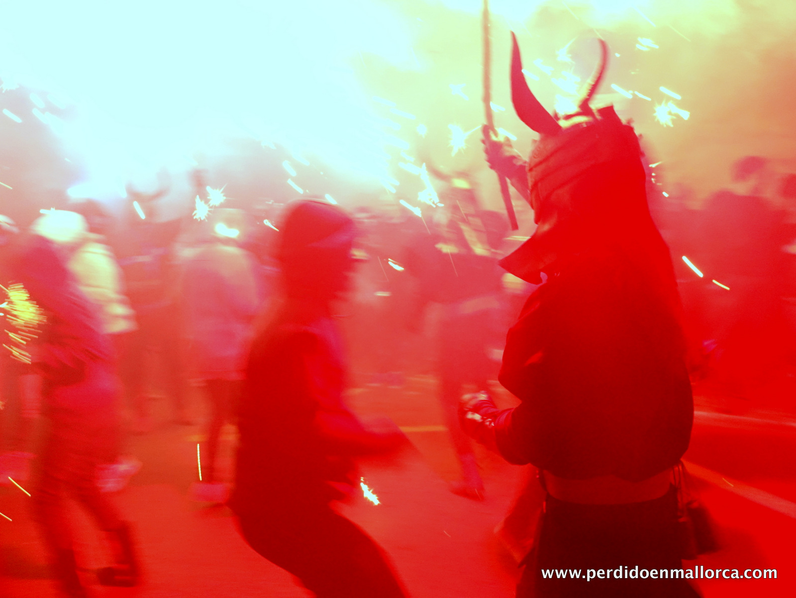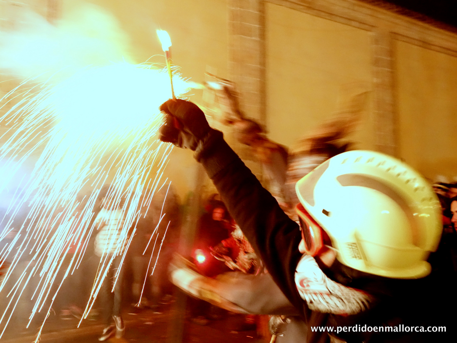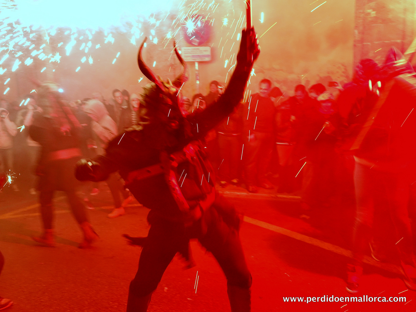 Las collas de correfocs son muy populares en las fiestas de Sant Sebastià, Patrón de Palma. Sus miembros se colocan máscaras demoníacas de aspecto terrible, con cuernos de carnero y van vestidos con ropajes inquietantes de apariencia medieval de colores rojo, negro o morado.