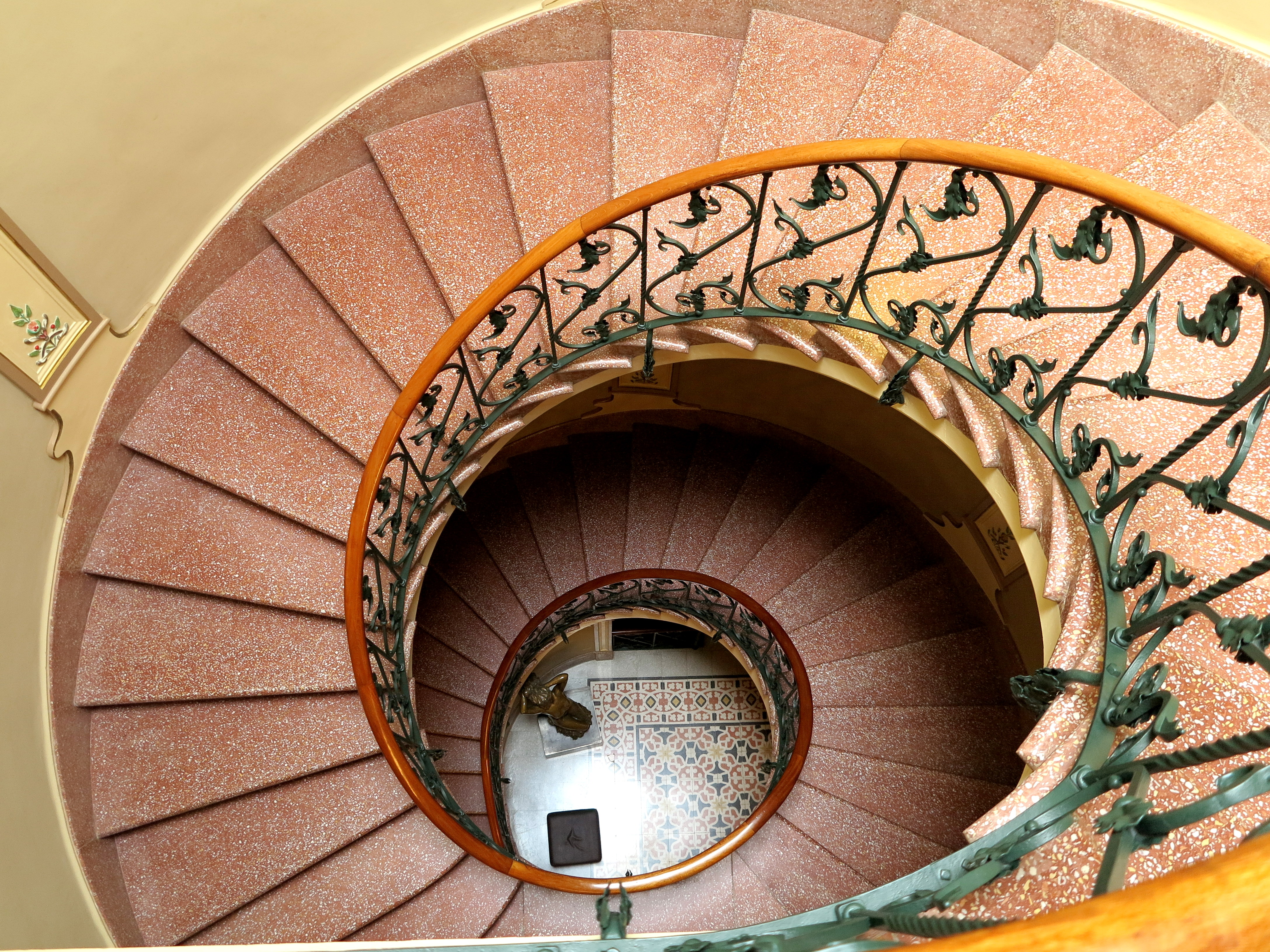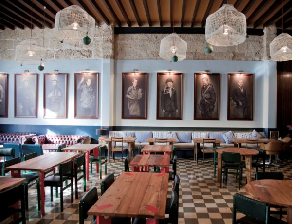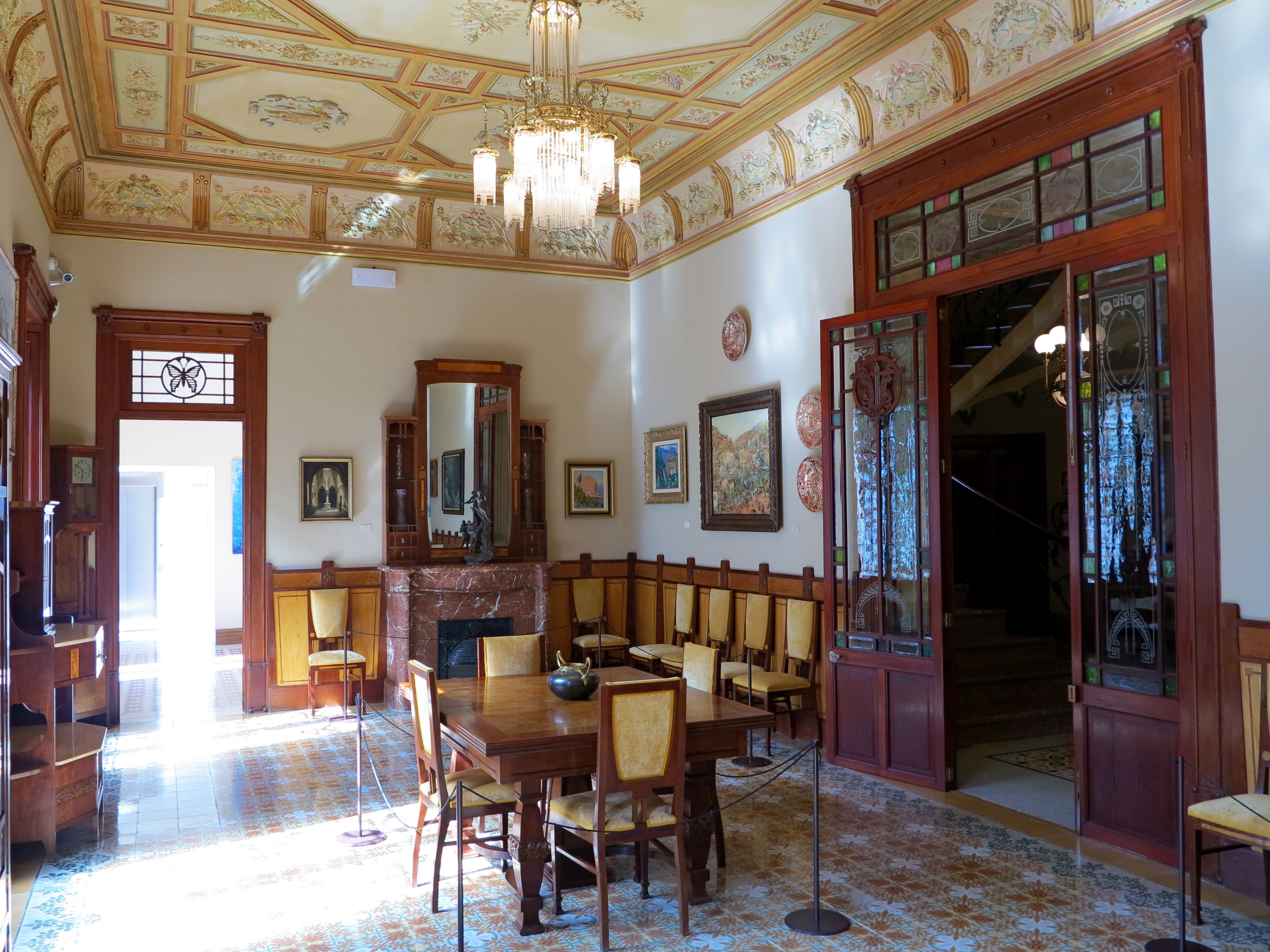 Galería cubierta con arcos carpaneles sobre columnas de fuste liso abombado y patio de acceso a una vivienda.